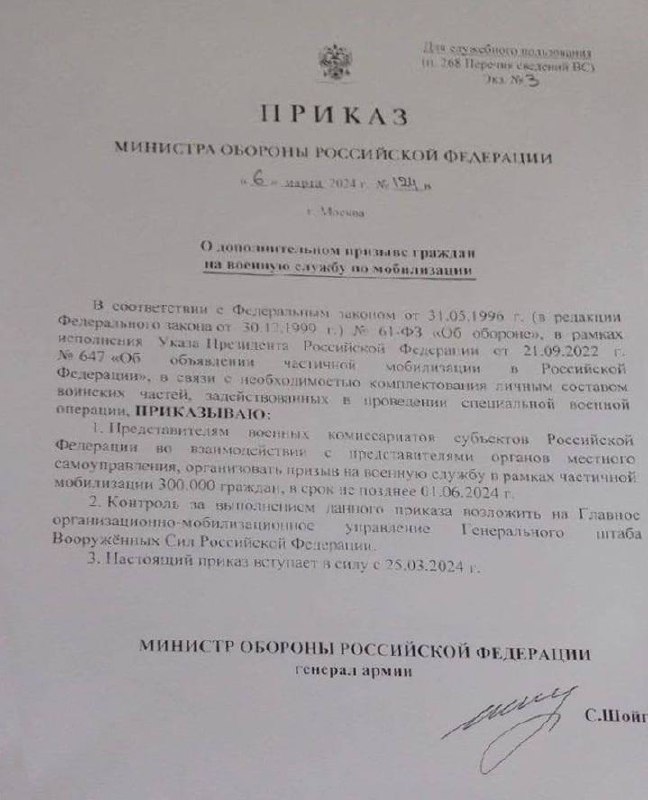 Российский фюрер готовит на убой 300 тысяч своих граждан 16-03-2024, 16:19 16-03-2024, 16:19 Дополнительно loginvovchyk 4 14 Сообщается, что рф мобилизирует до 300 тыс. сразу после выборов . Это исходит из приказа военного преступника - министра Вермахта рф шойгу